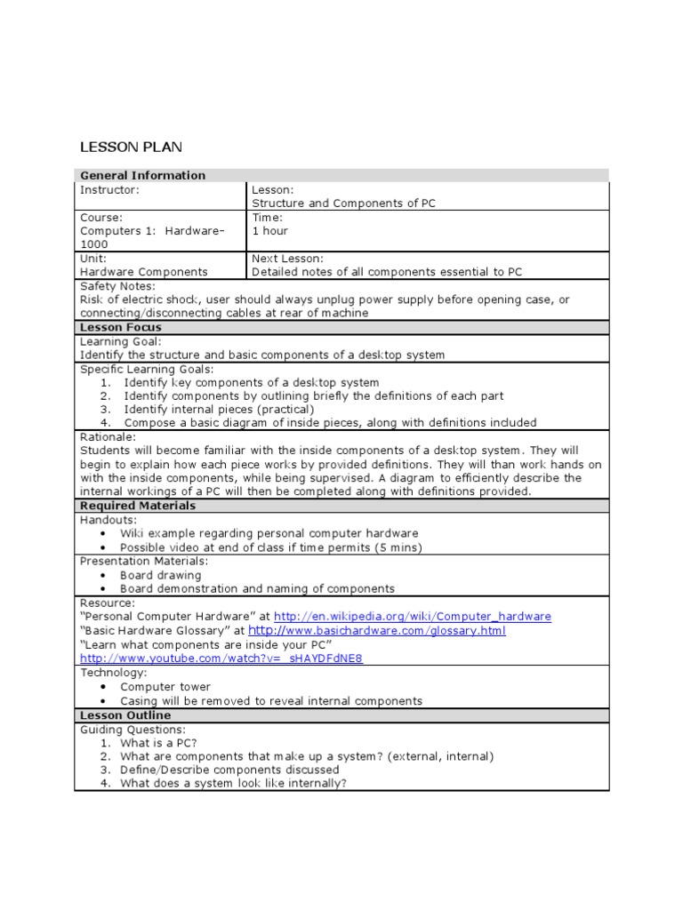 Computer Hardware Lesson Plan PDF Personal Computers Desktop Computer